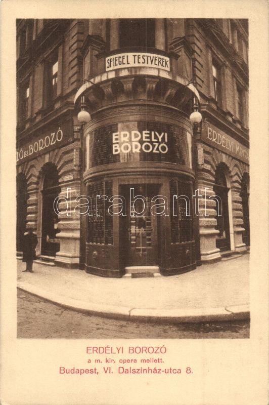 Budapest VI. Spiegel testvérek Erdélyi Borozója. Dalszínház utca 8.