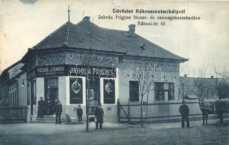 Budapest XVI. Rákosszentmihály, Jahoda (Jahrda) Frigyes fűszer és csemege üzlete és saját kiadása. Rákosi út 45.