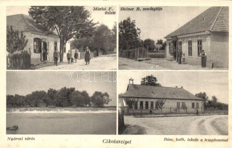 Cikolasziget, Márkó F. üzlete, Steiner B. vendéglője, Nyárosi zárás, Római katolikus templom és iskola