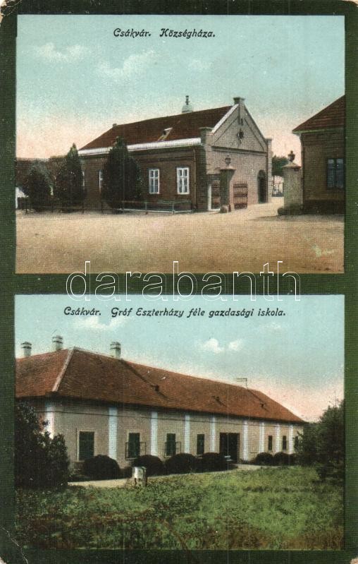 Csákvár, Községháza, Gróf Esterházy féle gazdasági iskola. Lodyl T. kiadása (kopott sarkak / worn corners)