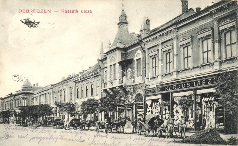 https://www.darabanth.com/en/28-Major-auction/28.1/Postcards/Hungary~11303/Debrecen-Kossuth-utca-Kardos-Laszlo-kelengye-uzlete-lovashintok-Thaisz-Arthur-kiadasa~II1678614