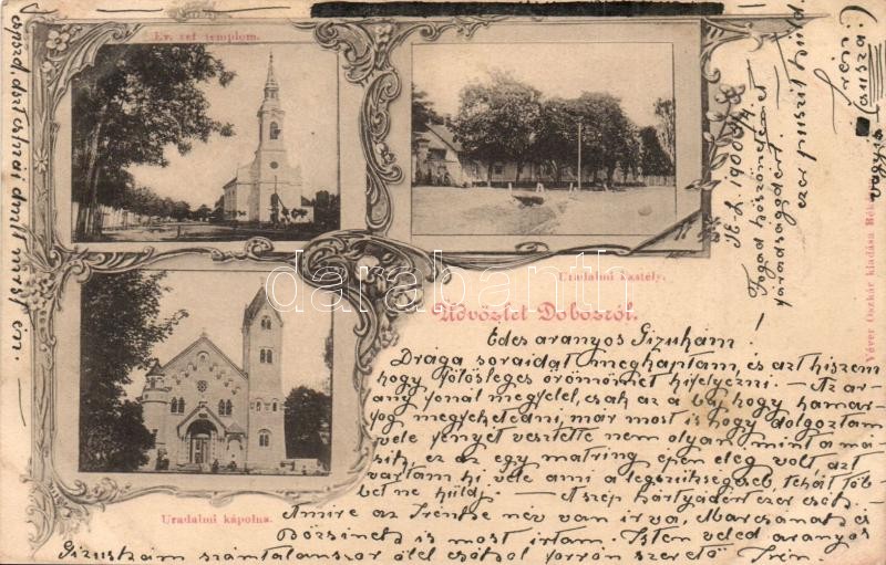 Doboz, Uradalmi kastély és kápolna, református templom. Art Nouveau (kissé ázott / slightly wet)