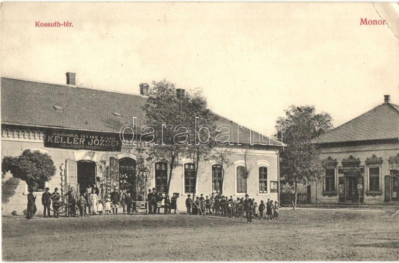 Monor, Kossuth tér, Somogyi Pál üzlete, Keller József (Heroder István ...