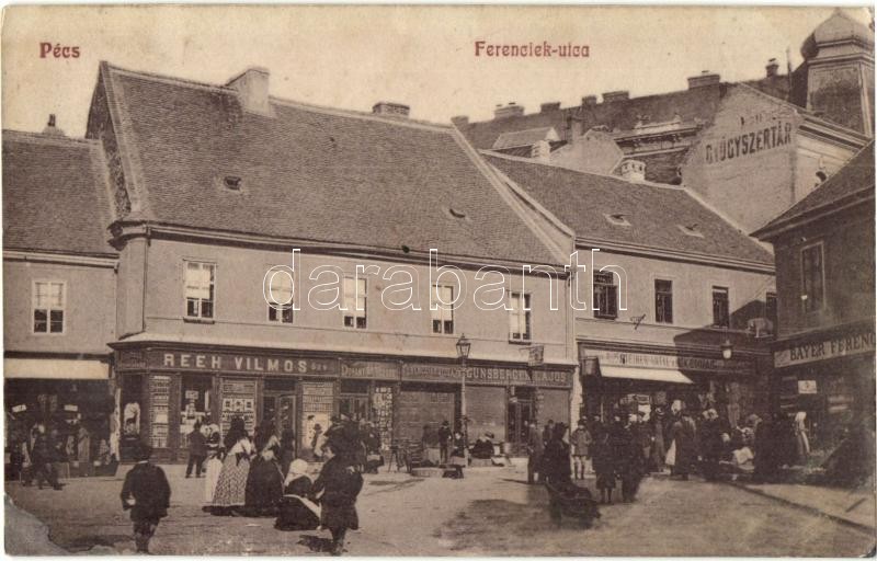 https://www.darabanth.com/en/28-Major-auction/28.1/Postcards/Hungary~11303/Pecs-Ferenciek-utca-gyogyszertar-Reeh-Vilmos-Gunsberger-Lajos-es-Bayer-Ferenc-uzlete-Stei~II1648040