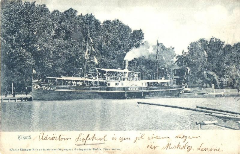 Siófok, kikötő, Baross gőzös. Ellinger Ede fényképész kiadása (r)
