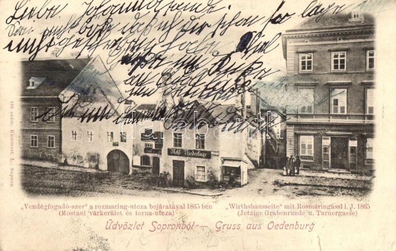 Sopron, Oedenburg; Vendégfogadó-szer a Rozmaring utca bejáratával 1865...