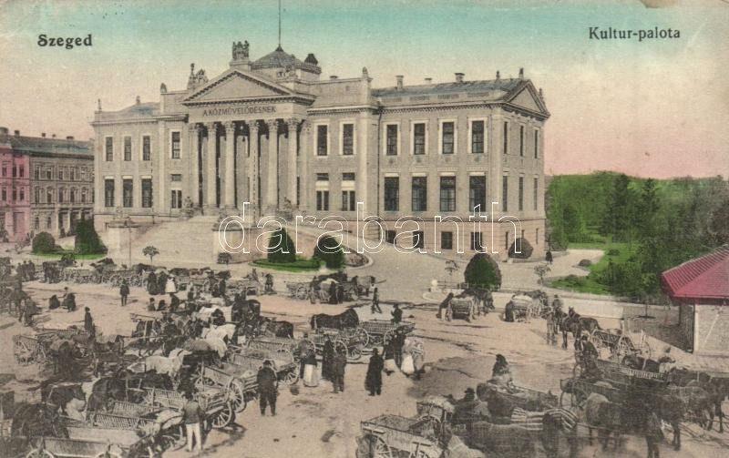 Szeged, Kultúrpalota, piac szekerekkel (EK)