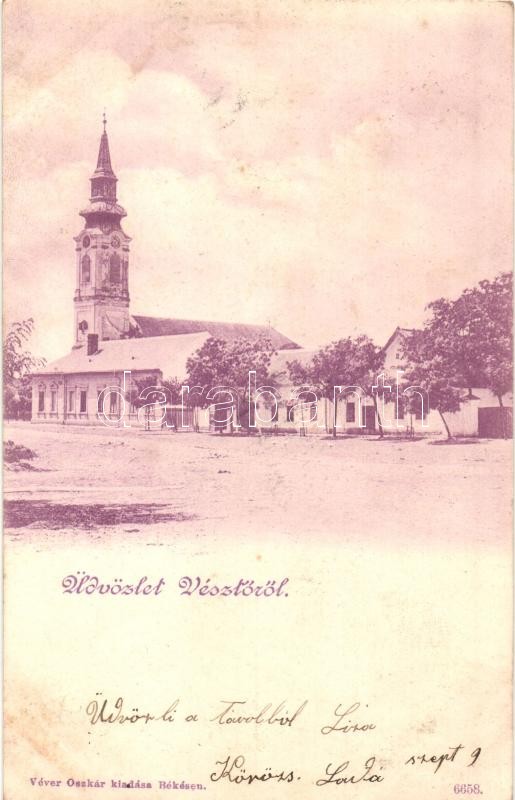 Vésztő, utcakép templommal