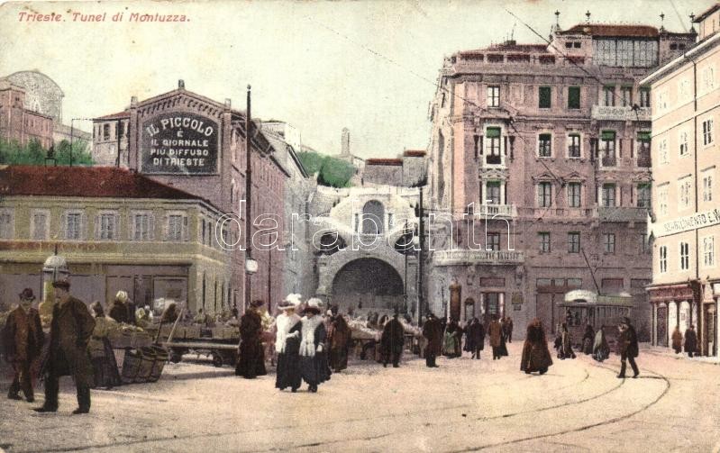 Trieste, Tunel di Montuzza, Il Piccolo / tunnel, market square, shops ...