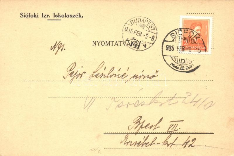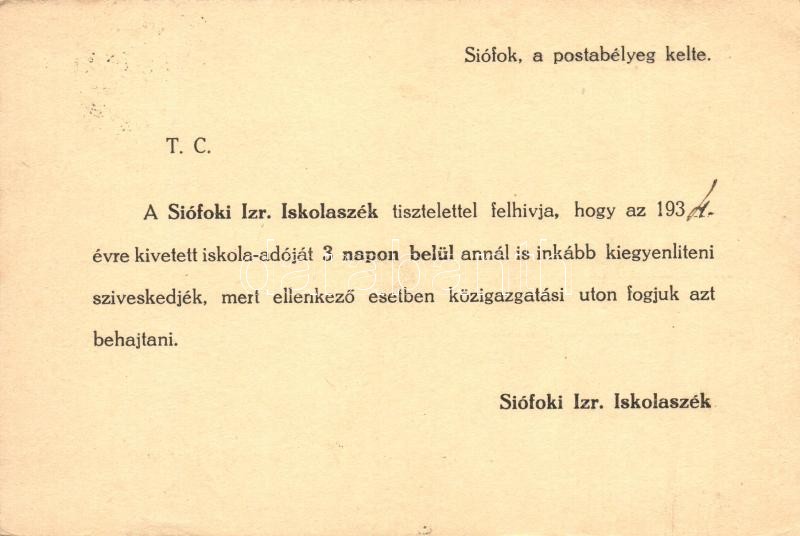 1935 Siófoki Izraelita Iskolaszék, iskola adó a hátoldalon / Hungarian...