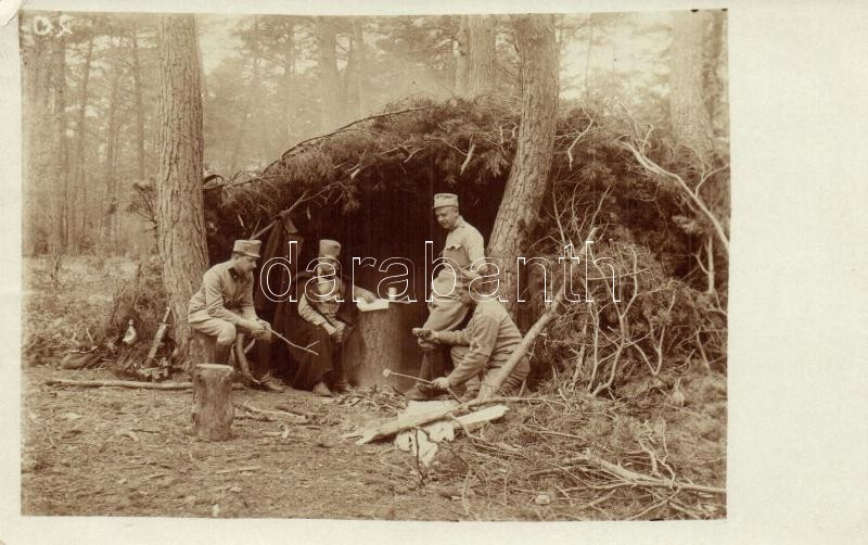 1915 Osztrák-magyar katonák szalonna sütés közben az erdőben + K.u.K. ... https://www.darabanth.com/en/28-Major-auction/28.1/Postcards/Militaria~11366/1915-Osztrak-magyar-katonak-szalonna-sutes-kozben-az-erdoben-plus-KuK-Feldmarodenhaus-Nr-22~II1687240