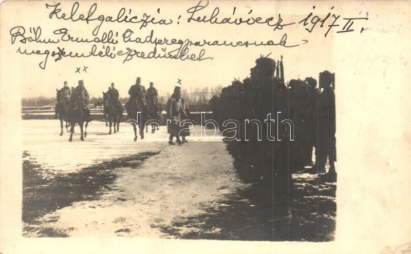 1917 Kelet-Galícia. Bőhm Ermalli hadseregparancsnok megszemléli az ezredet / WWI K.u.K. Colonel General visiting the military regiment. photo (EK)
