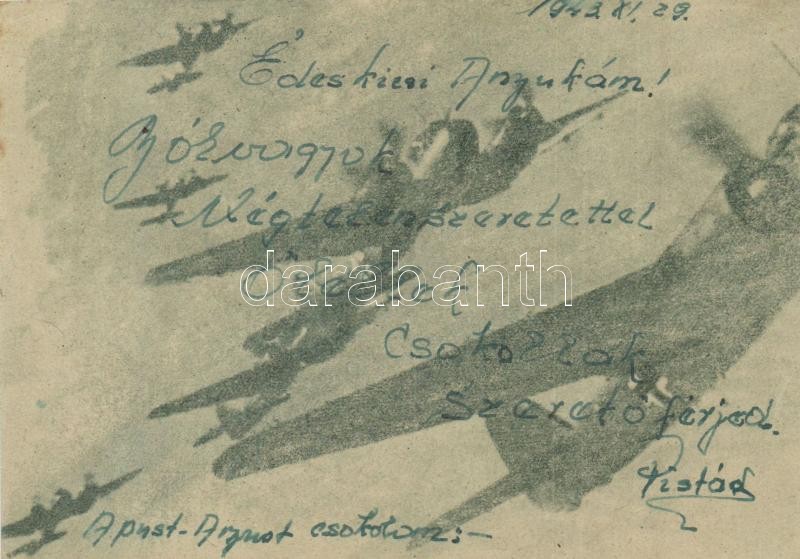 1943 Repülőgépek. Tábori Postai Levelezőlap / WWII Hungarian military ...