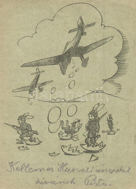 Kellemes Húsvéti Ünnepeket! Tábori Postai Levelezőlap / WWII Hungarian...