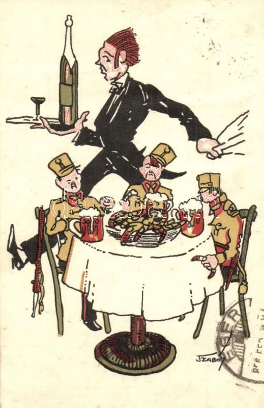 Magyar humoros katonai lap, kiadja Ludovika Akadémia Levente-köre / Hungarian military humour, waiter s: Szabó (fa)
