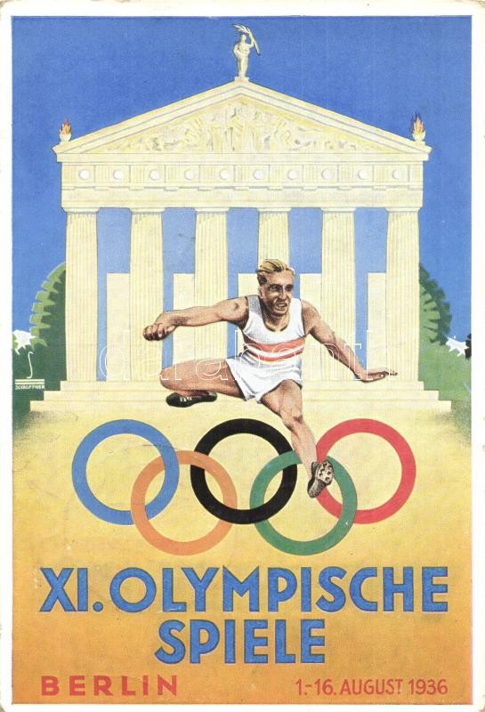 1936 Berlin XI. Olympische Spiele / Summer Olympics in Berlin advertisement card, So. Stpl s: Schroffner (fa)