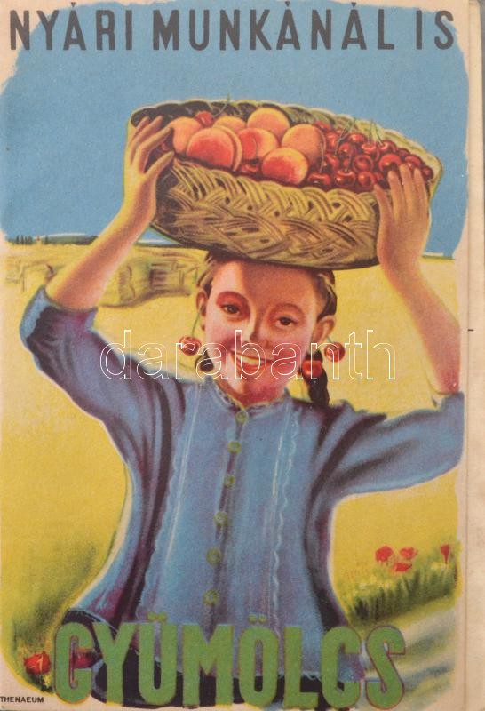 10 darabos régi magyar gyümölcsös propagandalap gyűjtemény albumban / 10 pre-1945 Hungarian fruit and health propaganda cards in album