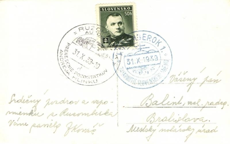 1939 Rozpomienka na Minulost, Vodcu, Národa / Andrej Hlinka memorial p...
