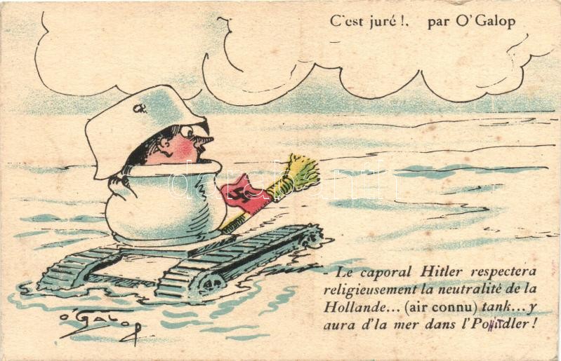 C'est juré! / WWII Anti-Hitler mocking graphic art postcard, tank. Collection Comique Militaire 144. A. Noyer Paris s: O' Galop (EK)