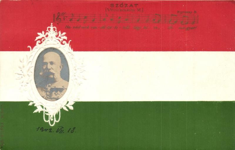 Description: Hazádnak rendületlenül légy híve, Oh Magyar! Szózat, Ferenc József. Magyar hazafias lap / Second national anthem of Hungary, patriotic propaganda, Franz Joseph, Emb.