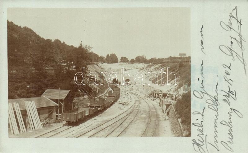 1902 Pozsony, Pressburg, Bratislava; vasúti alagút építés közben vagon...