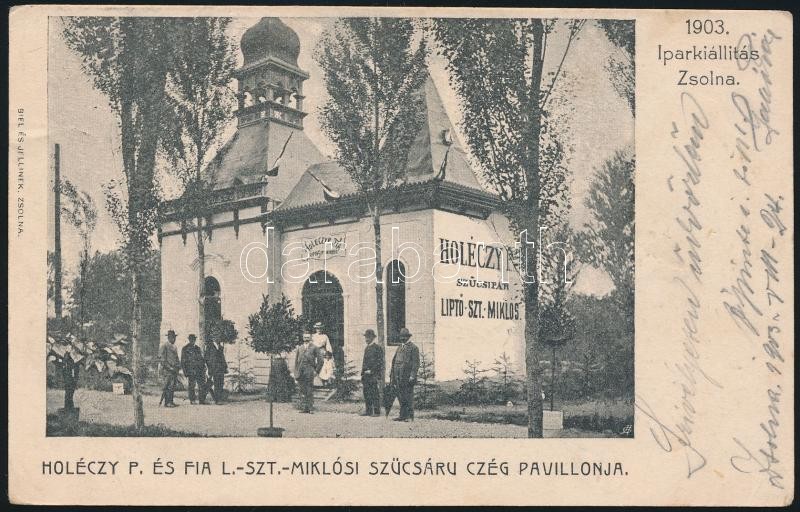 1903 Zsolna, Sillein, Zilina; Iparkiállítás, Holéczy P. és fia liptósz... https://www.darabanth.com/en/28-Major-auction/28.1/Postcards/Slovakia~11305/1903-Zsolna-Sillein-Zilina-Iparkiallitas-Holeczy-P-es-fia-liptoszentmiklosi-szucsaru-c~II1685232