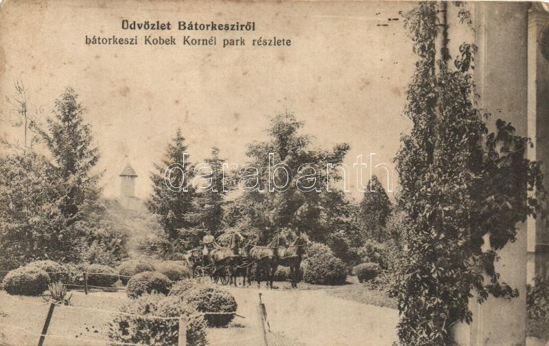 Bátorkeszi, Bátorove Kosihy, Kesy; Kobek Kornél kastély park, lovaskocsi / castle park, horse cart (EK)