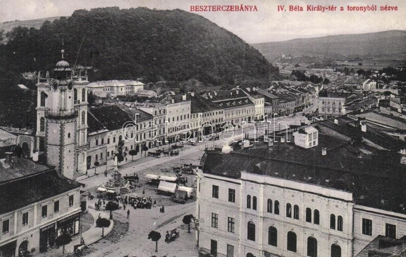 Besztercebánya, Banska Bystrica; IV. Béla király tér a toronyból nézve... https://www.darabanth.com/en/28-Major-auction/28.1/Postcards/Slovakia~11305/Besztercebanya-Banska-Bystrica-IV-Bela-kiraly-ter-a-toronybol-nezve-piac-Kohn-Jozsef-Ho~II1682635