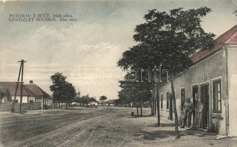Búcs, Búce, Búc; Kiss utca, üzlet / Mala ulica / street view with shop (EK)