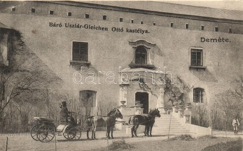 Deméte, Demjata; Báró Uszlár-Gleichen Ottó kastélya, lovas hintó. Divald / castle, chariot / Schloss (EK)