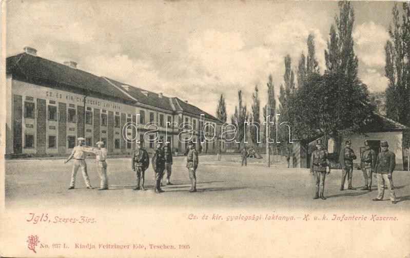 https://www.darabanth.com/en/28-Major-auction/28.1/Postcards/Slovakia~11305/Iglo-Iglau-Spisska-Nova-Ves-Cs-es-kir-gyalogsagi-laktanya-katonakkal-Feitzinger-Ede-No-~II1682037