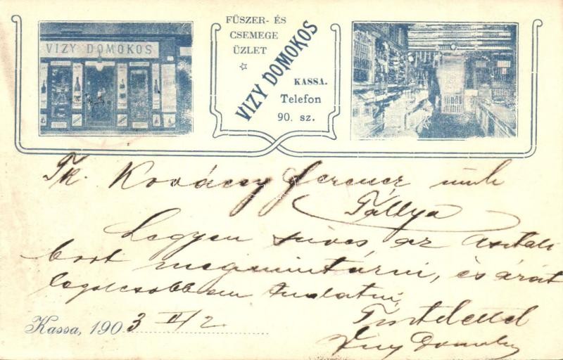 https://www.darabanth.com/en/28-Major-auction/28.1/Postcards/Slovakia~11305/Kassa-Kosice-Vizy-Domokos-fuszer-es-csemege-uzlete-belso-reklamlap-shop-advertisement-in~II1685203