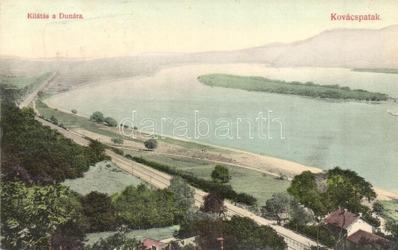 Kovácspatak, Kovacov; Kilátás a Dunára vasútállomással / railway station