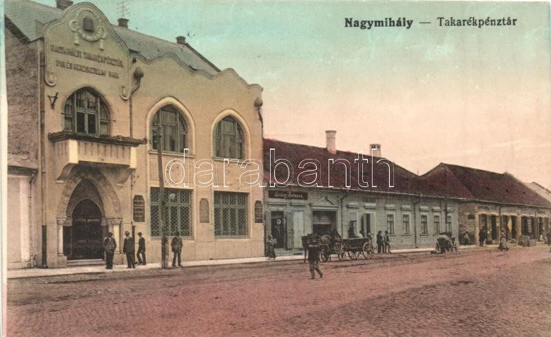 Nagymihály, Mihalovce; Takarékpénztár, Lichtig Hermann üzlete / saving...