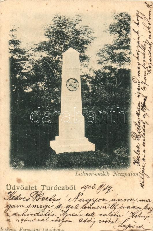 Necpál, Necpaly (Túrócszentmárton); Lahner emlék. Moskóczi Ferenczné t...