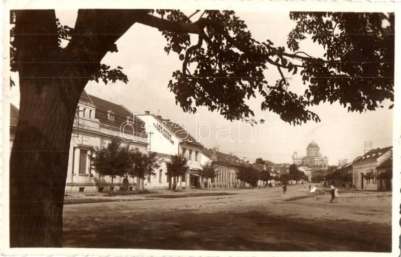 Párkány, Stúrovó; utcakép az esztergomi Bazilikával, gyógyszertár / st...