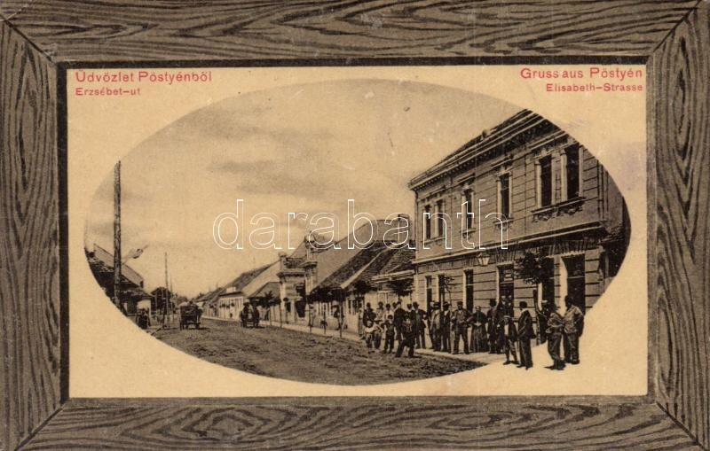 Pöstyén, Piestany; Erzsébet úr, keretes lap + Vöröskereszt Hadikórház pecsét / Elisabeth Strasse / street view, frame (EK)