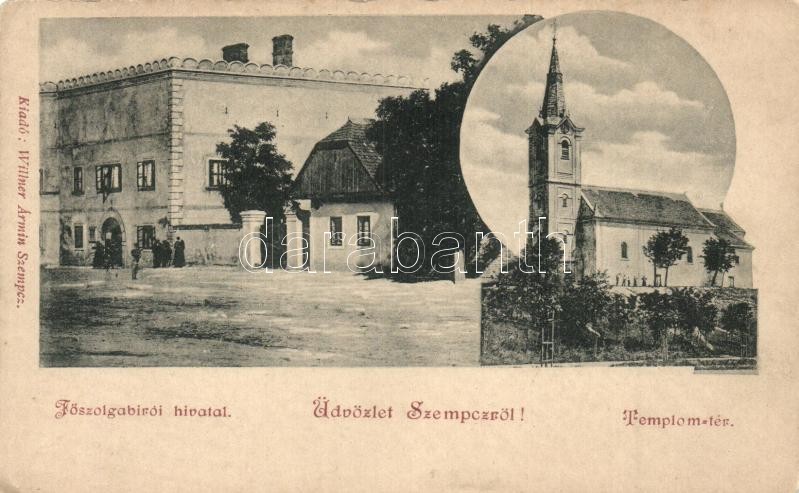 Szenc, Szempcz, Senec; Templom tér, Főszolgabírói hivatal. Willner Ármin kiadása / church square, judge's office (EK)