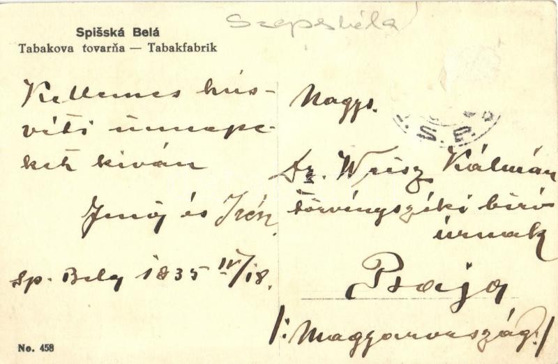 Szepesbéla, Spisska Bela; Dohánygyár / Tabakova tovarna / tobacco fact...