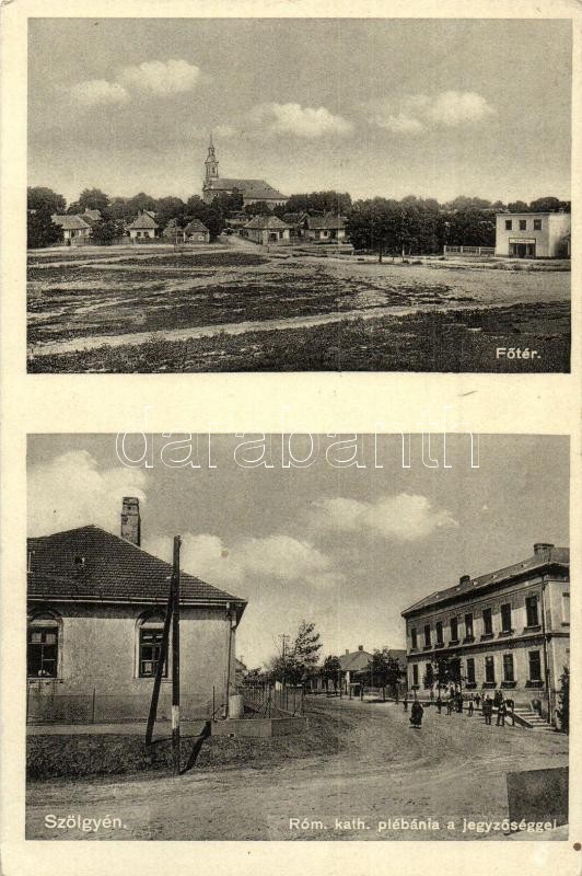 Szőgyén, Szölgyén, Svodín; Fő tér, utcakép, Római katolikus plébánia, jegyzőség / main square, street, parish, notary