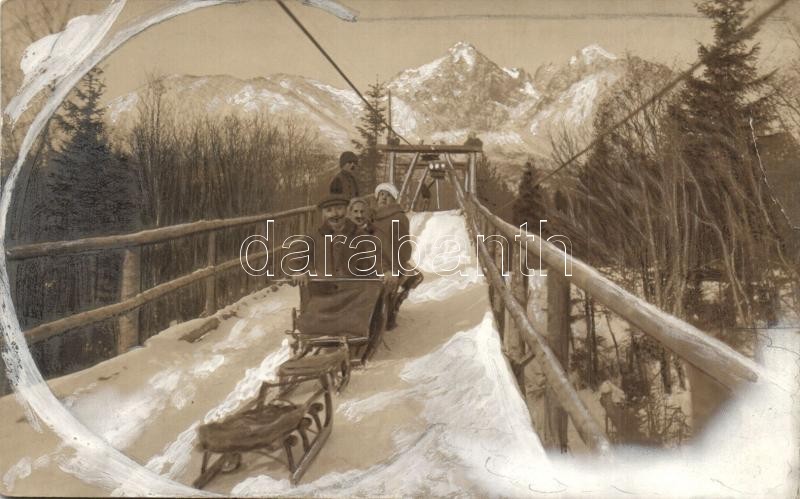 Tátra, szánkózó társaság. Festett fotó / sledding people. Painted phot...