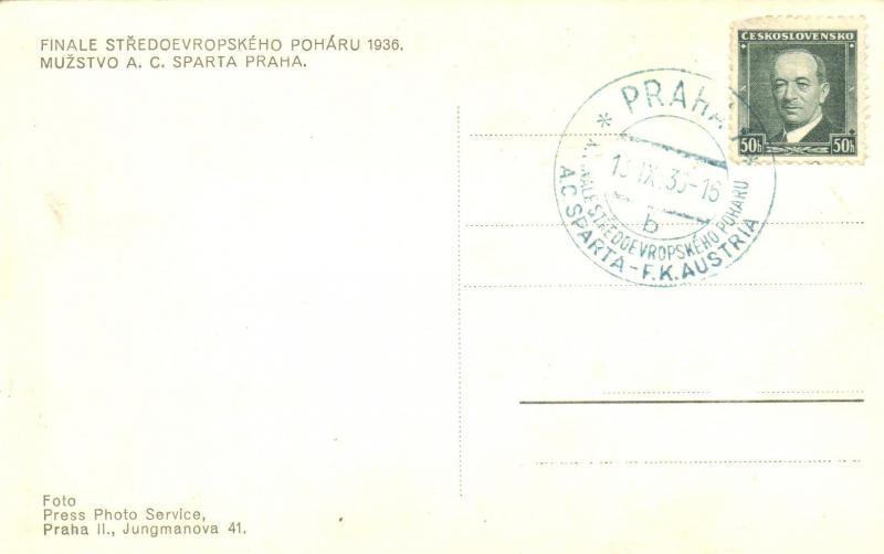 1936 Finale Stredoevropského poháru, Muzstvo A.C. Sparta Praha / Final... https://www.darabanth.com/en/28-Major-auction/28.1/Postcards/Sport~11380/1936-Finale-Stredoevropskeho-poharu-Muzstvo-AC-Sparta-Praha-Finals-of-the-Central-European-In~II1687285