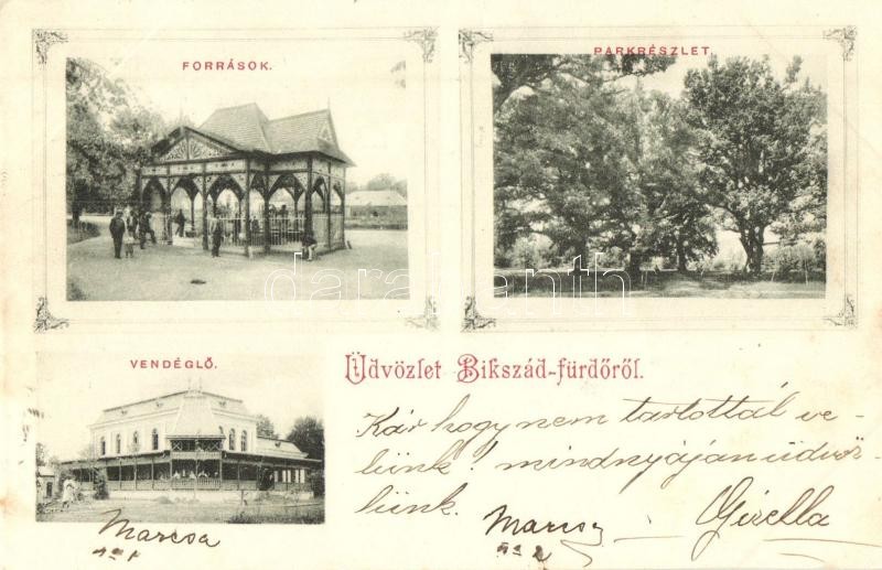 Bikszád-fürdő, Baile Bixad; források, park, vendéglő / springs, park, ...