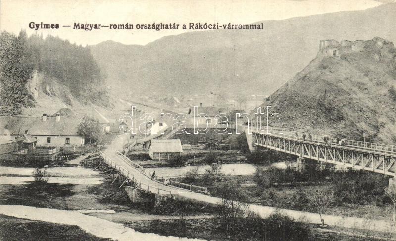 Gyimes, Ghimes; Magyar-román országhatár, Rákóczi várrom, vasúti híd. ...