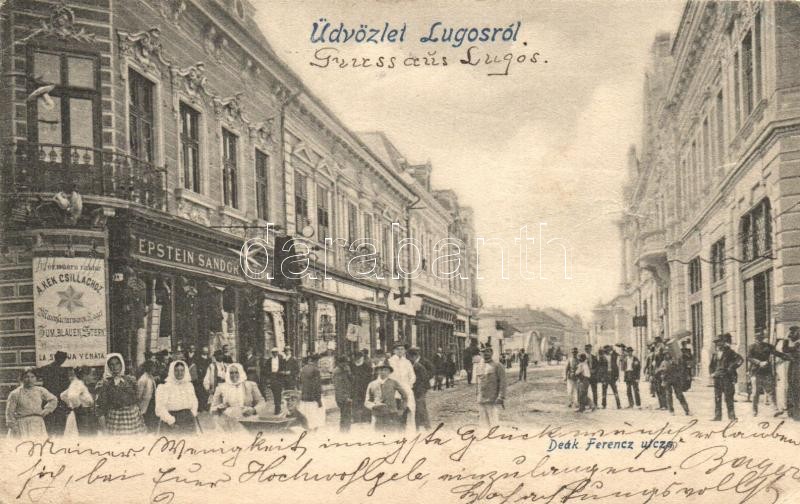 https://www.darabanth.com/en/28-Major-auction/28.1/Postcards/Transylvania~11304/Lugos-Lugoj-Deak-Ferenc-utca-Kezmuaru-raktar-a-Kek-Csillaghoz-Epstein-Sandor-uzlete-st~II1572548