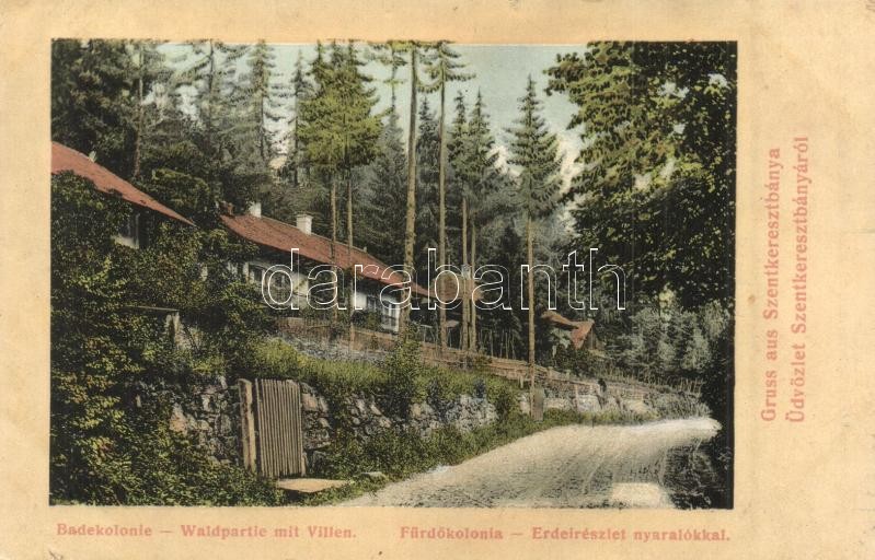 Szentkeresztbánya, Szentegyháza, Vlahita; fürdőkolónia, erdei részlet nyaralókkal / spa colony, forest with villas (fl)