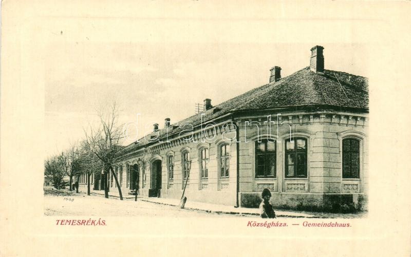 Temesrékás, Recas; Községháza, utca. W.L. Bp. 6730. / Gemeindehaus / s...