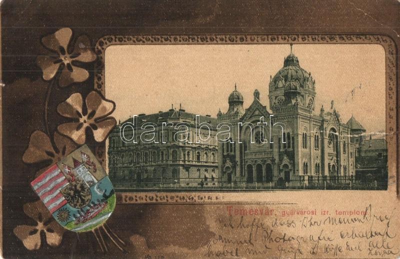 Temesvár, Timisoara; Gyárvárosi izraelita templom, zsinagóga. Címeres,...