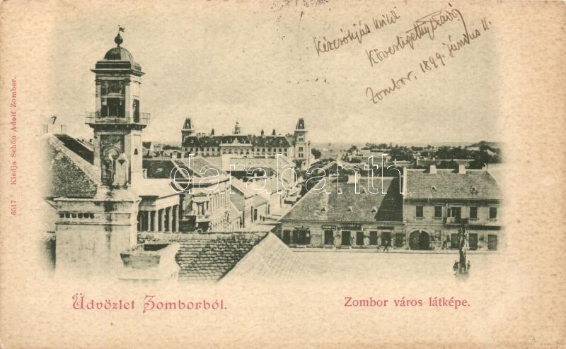1899 Zombor, Sombor; látkép, Kahn H. és Kaufman S. üzlete / panorama v...