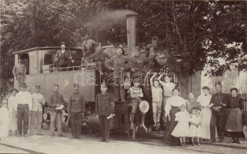 Description: 1908 Szárcsa, Sutjeska; 2 db fotóképeslap a vasútállomásról hajtánnyal és gőzmozdonnyal / 2 photo postcards of the railway station with hand car and locomotive